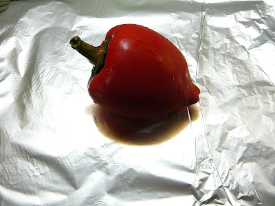 Este método es al horno, cortamos un pedazo de papel alumunio y colocamos el morrón o pimiento lavado y seco y lo envolvemos bien, lo acomodamos en una placa y lo llevamos a horno fuerte por 15-20 minutos.