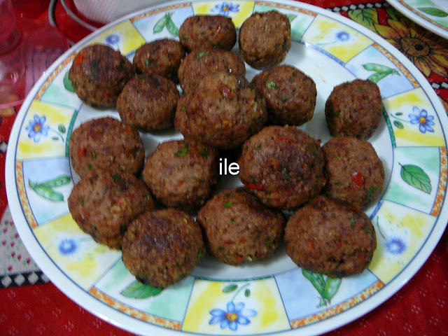La carne le saqué toda la grasita que pude y la corte en rodajas finas, los chorizos los dejé enteros.