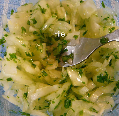 En una cacerola, pongo el apio, la cebolla y la zanahoria cortada en tiras o bastones finos, con un poco de aceite y lo pongo a rehogar hasta que estén tierno y traslúcidos.