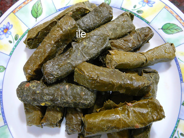Justo estamos en la época en que las hojas de parra estan saliendo y son bien tiernas,para poder preparar este plato.