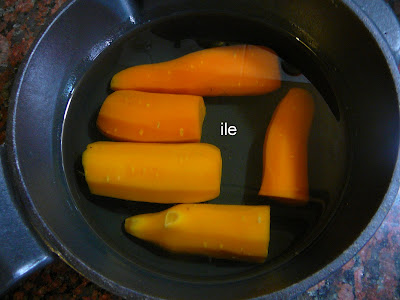 Elegimos unas lindas zanahorias, se pelan y las ponemos a cocinar en agua con sal hasta que estén tiernas.