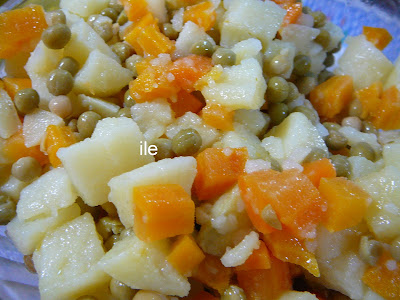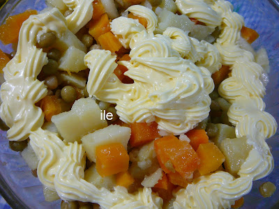 Bueno, les cuento como hago la ensalada rusa en casa de forma casera, lleva un poco más de tiempo, un poco más de cuidado pero creo que es mucho más rica la casera que envasada o con las verduras freezadas.