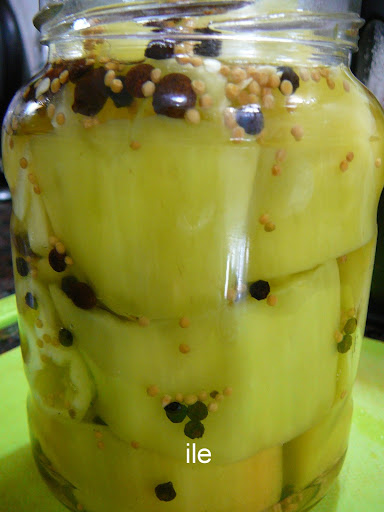 Corto en trozos grandes los ajíes y los voy colocando en el frasco apretadamente.
