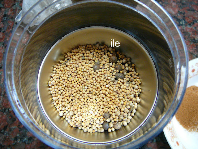 Acá puse la pimienta negra en grano, las semillas de coriandro o cilantro, las bayas de allspice o pimienta de Jamaica.