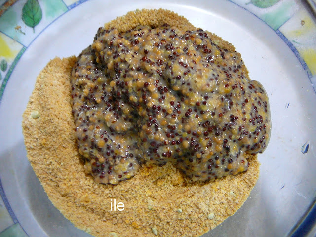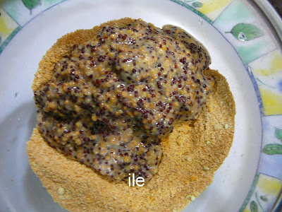 Coloco en el mortero 3 cucharadas de mostaza negra.