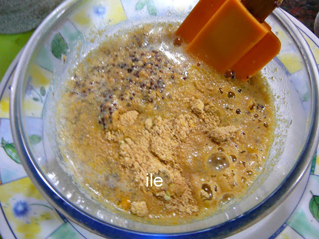 Le agrego 3 cucharadas de mostaza rubia y una cucharada de vinagre de vino (puede ser vinagre de alcochol o vino blanco o tinto)