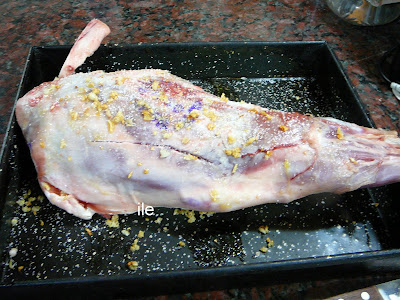 Esta pata de cordero teoricamente iba a hacerse a la parrilla, pero cayó un chaparrón y al final decidimos no hacerlo ahí.