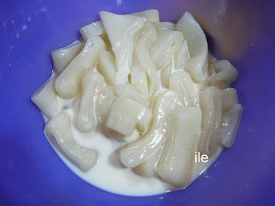 Pero podes comprarlos enteros, limpiarlos y vaciarlos por dentro, y al tubo le sacas la piel que las cubre y las cortas en anillos de 1/2 cm de ancho.