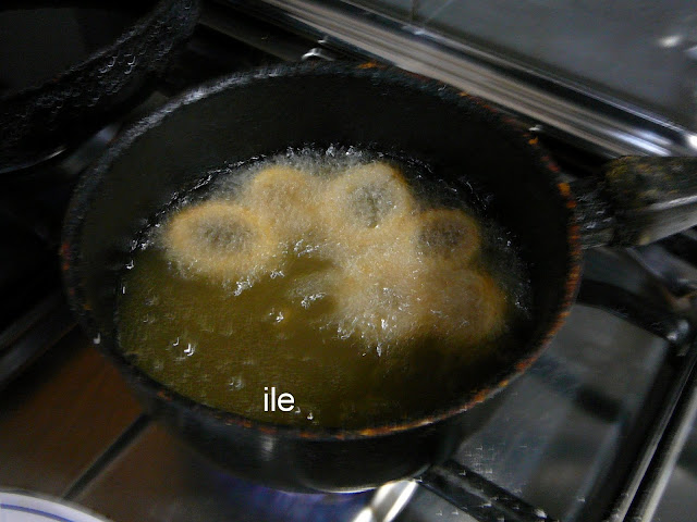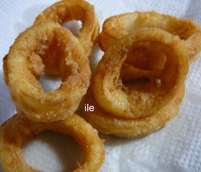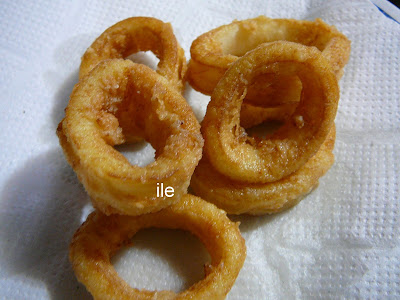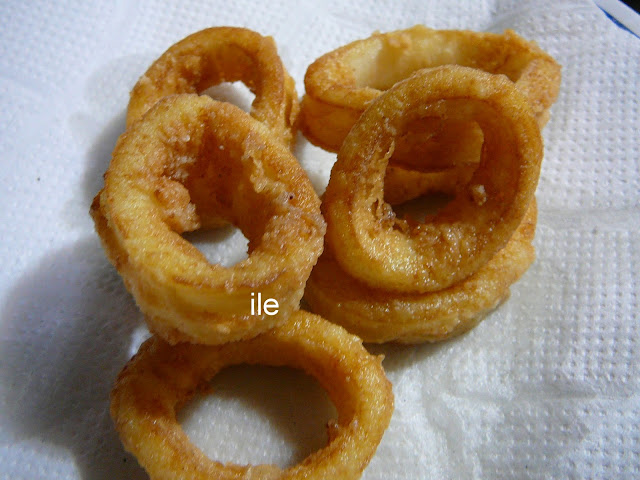 Hay que tratar de echar por tandas pequeñas las anillas a fritar. para que queden bien redondas, crocantes y tiernas por dentro.