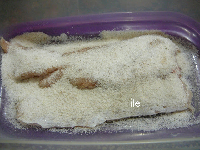 Y la cubro con el resto de la mezcla de sales y azúcar.