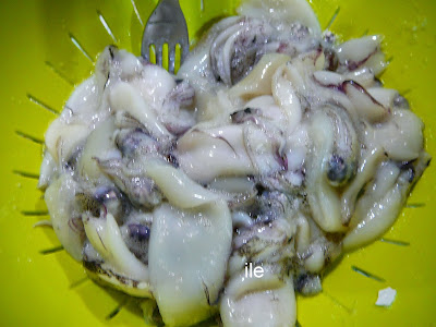 Sumerjo los chipirones en la clara de nieve batida y dejo unos minutos ahi, después los escurro.