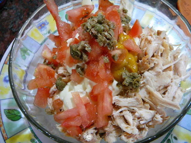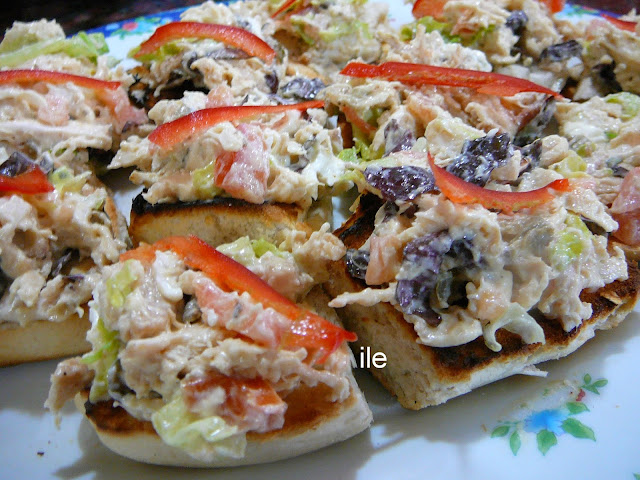 Estas brusquetas o bruschettas las hice con el pollo que me habia sobrado el día anterior.