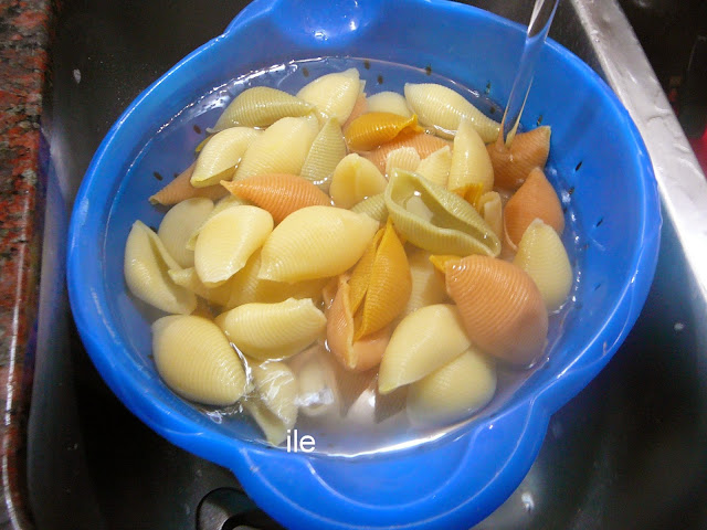 Después la cole la dejé enfriar bajo el chorro de agua fría y cuando veo que la pasta está fría,