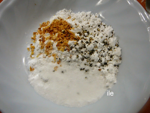 Le agregamos una cucharadita de cebolla deshidratada (podes ponerle un poco más si queres), 1 cucharadita de sal bien colmada, y pimienta negra recién molida a gusto (podes ponerle cualquier pimienta si queres).