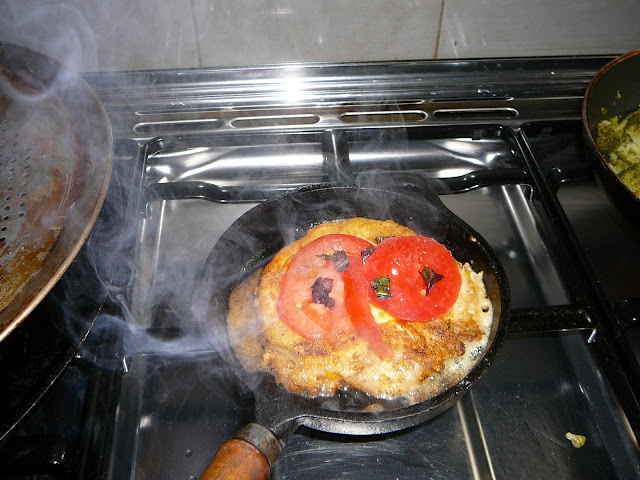 Se pone a calentar la provoletera ( es de hierro fundido, a esta la usamos también cuando la hacemos en la parrilla.
