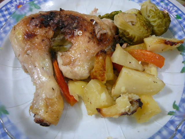 Las papas tomaron el gusto del pollo y su aderezo, una delicia, solo quedaron los huesitos pelados!!