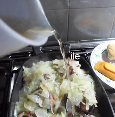 Ahora tapo la cacerola y dejo cocinar por 1 1/2 horas a fuego bajo.